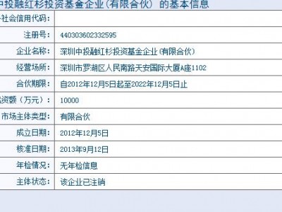 深圳中投融紅杉投資基金企業(yè)(有限合伙)